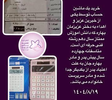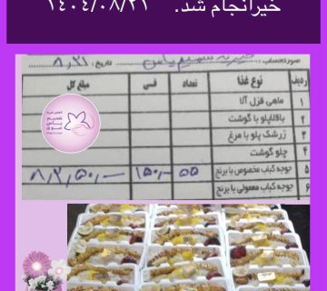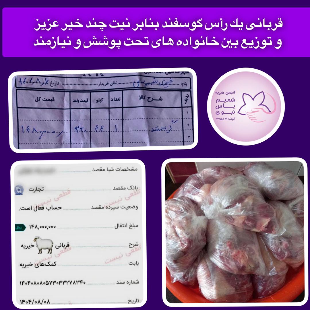 توزیع ۵۵ پرس غذاى گرم ، حدود ١٢ کیلو گوشت (بنابر نیت یکى از خیرین بزرگوار )، تعدادى مرغ نذری و تعدادى نان از محل وجوه کفاره به تعدادى از خانواده های تحت پوشش.چهارشنبه ١۴٠۴/٨/١۴. اخبار, خبرهای فعالیت های موردی