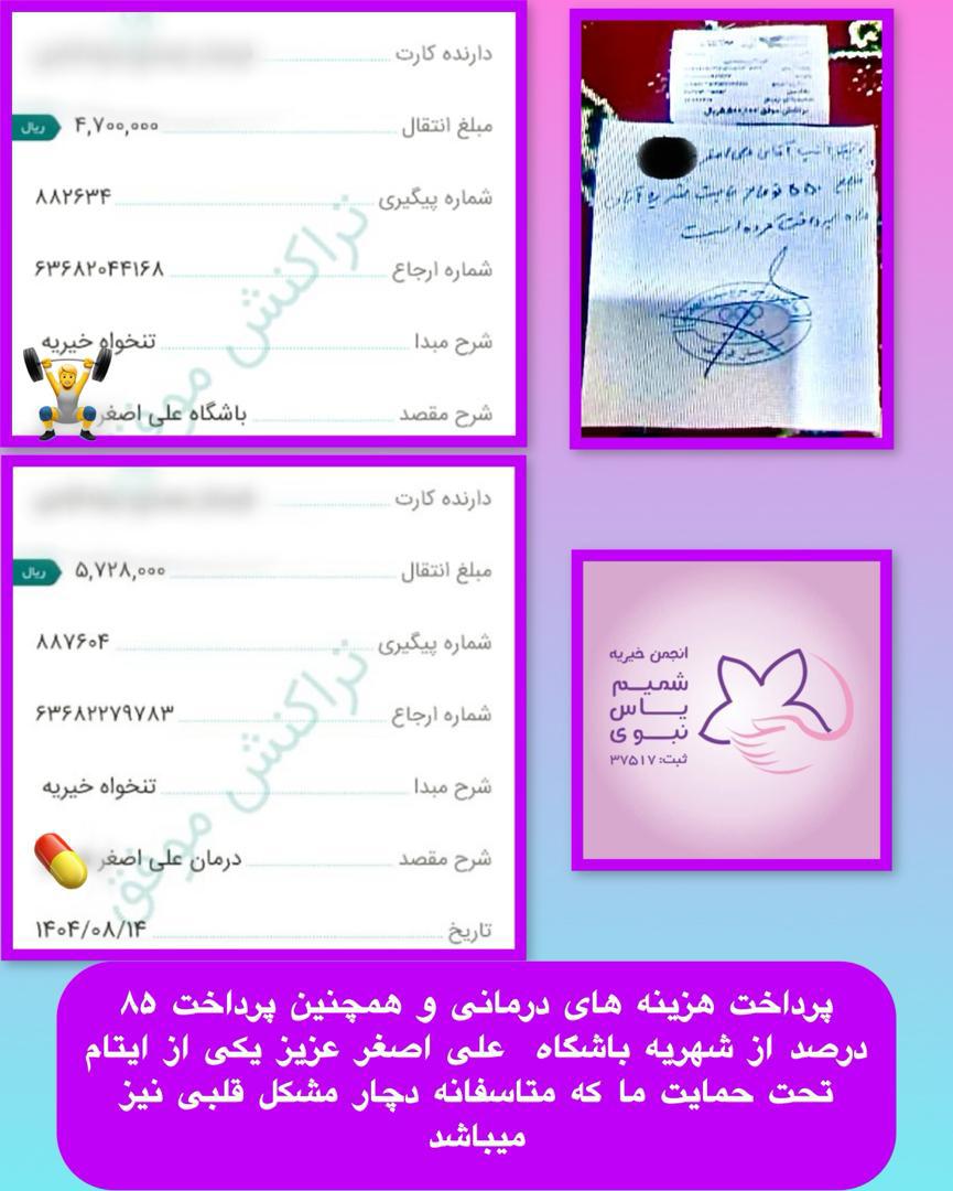 پرداخت هزینه های درمانی علی اصغر جان که دچار ناراحتی قلبی می باشد و پدر خانواده فوت کرده است اخبار, خبرهای فعالیت های موردی