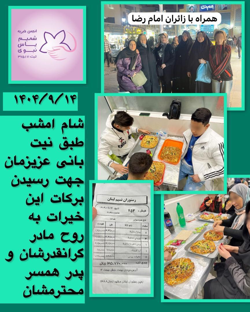 توزیع و تهیه ۴۶ پرس غذای گرم به خانواده های تحت حمایتمان در چهارشنبه بتاریخ ۱۴۰۴/۹/۱۲ اخبار, خبرهای فعالیت های موردی