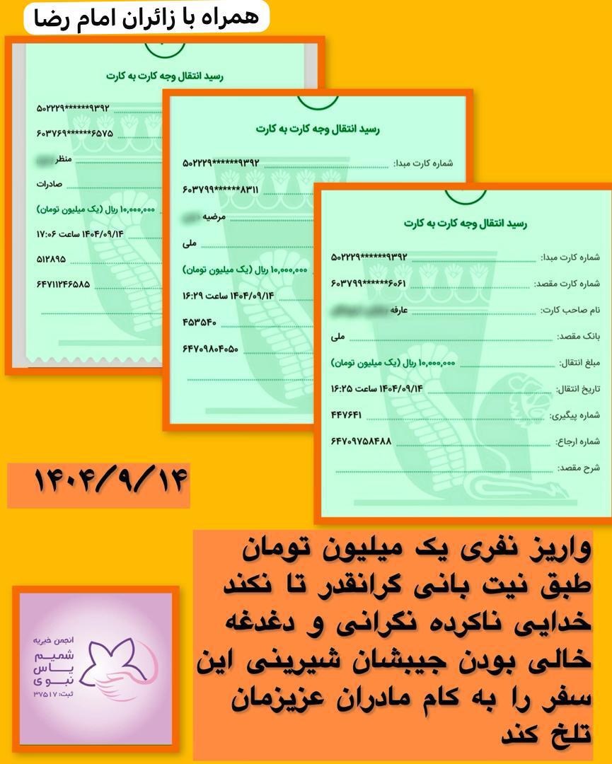 طبق نیت عزیز و نازنین جهت شادی روح پدر و مادر گرانقدرشون نفری یک میلیون تومان به بچه های ‘لمون هدیه داده شد اخبار, خبرهای فعالیت های موردی