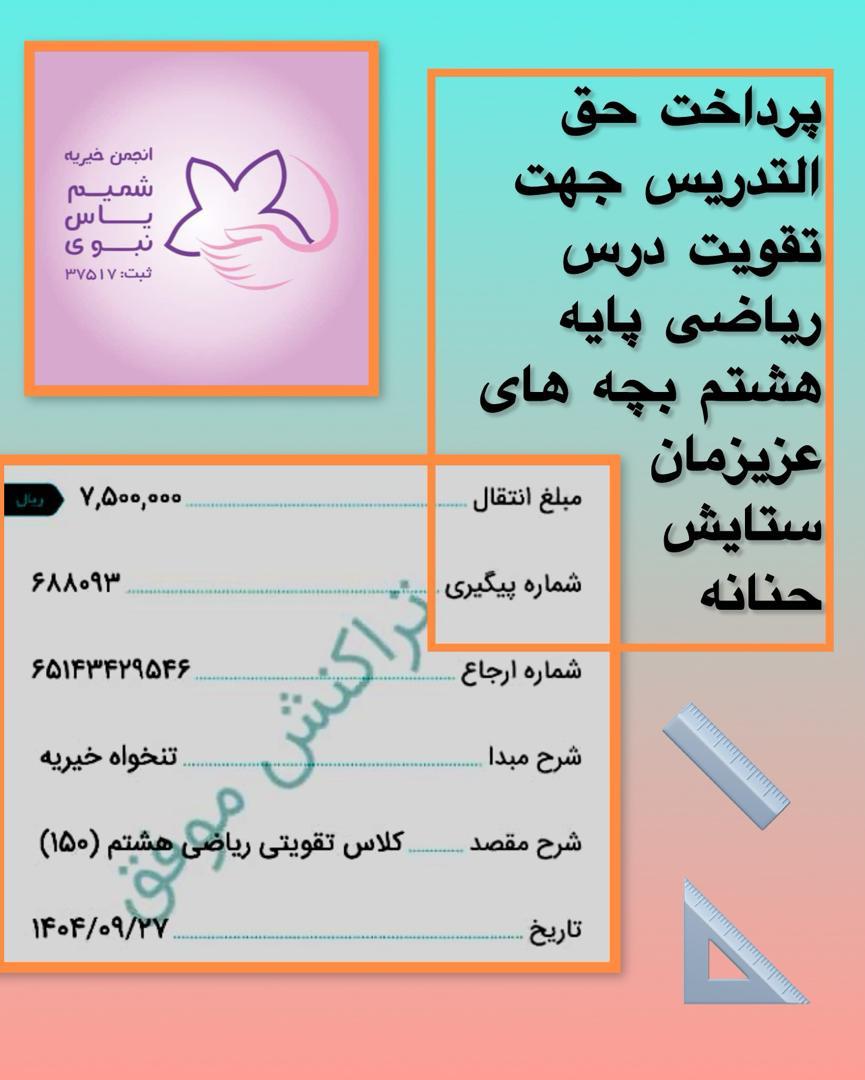 پرداخت حق التدریس جهت تقویت درس ریاضی پایه ششم بچه های عزیزمان فاطمه نادیا مریم نکین اخبار, خبرهای فعالیت های موردی
