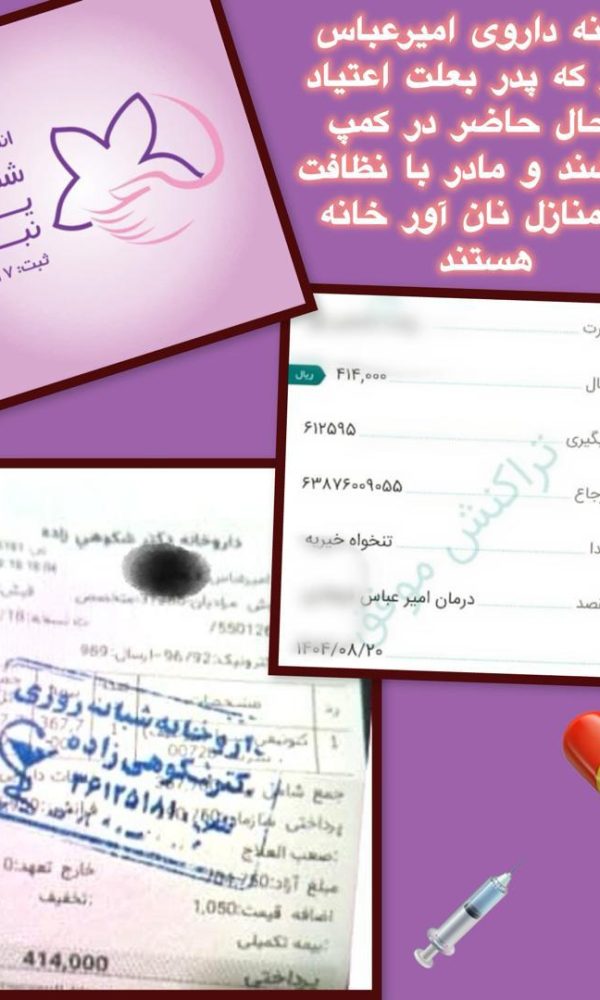 هزینه داروی امیر عباس عزیز که پدر بعلت اعتیاد در حال حاضر در کمپ میباشند و مادر با نظافت در منازل نان آور خانه هستند Admin1 آذر 1404