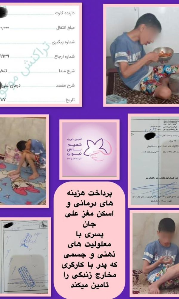 پرداخت هزینه های درمانی و اسکن مغز على جان پسری با معلولیت های ذهنی و جسمی که پدر با کارگری مخارج زندگی را تامین میکند Admin1 آذر 1404