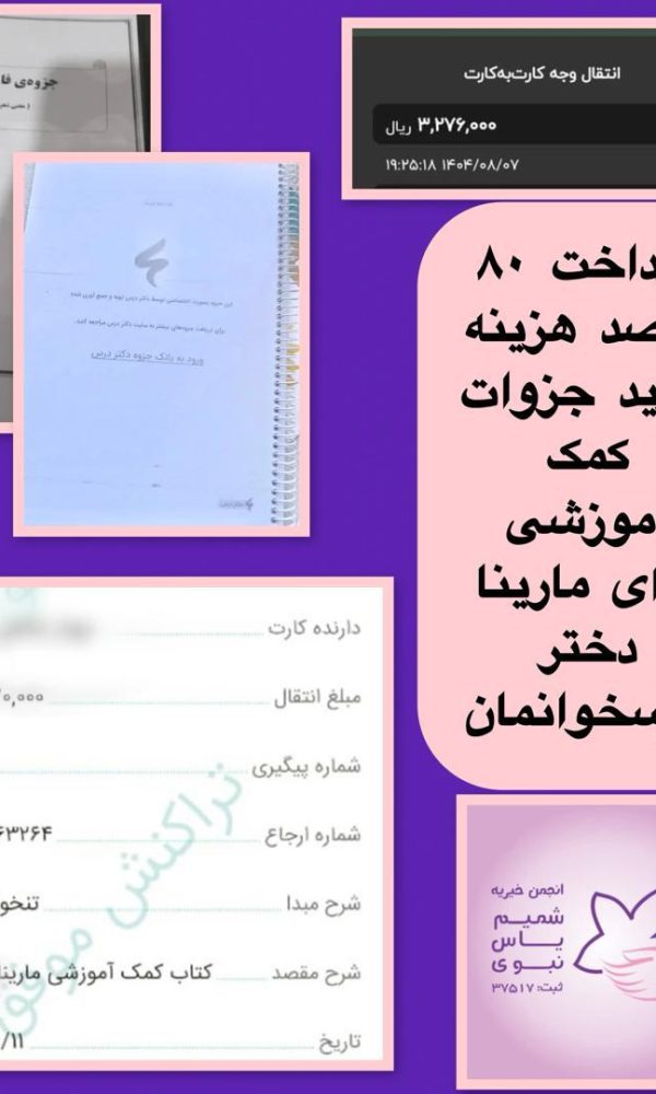 پرداخت 80 درصد آموزشی برای مارینا دختر درسخوانمان Admin1 آذر 1404هزینه خرید جزوات کمک& ... ادامه مطلب