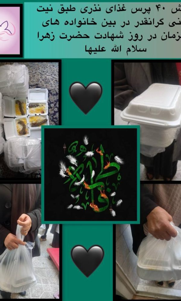 پخش ۴۰ پرس غذای نذری طبق نیت بانی گرانقدر در بین خانواده های عزیزمان در روز شهادت حضرت فاطمه الزهراAdmin4 آذر 1404