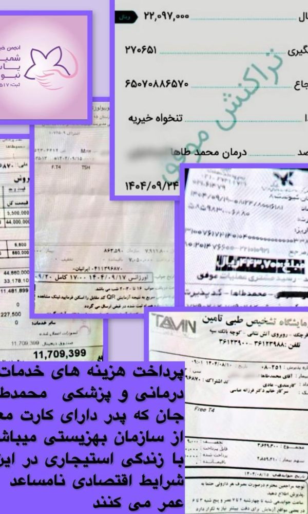 پرداخت هزینه های خدمات درمانی و پزشکی محمد طاها جان که پدر دارای کارت معلولیت از سازمان بهزیستی می باشد و با زندگی استیجاری در این شرایط اقتصادی گذران عمر می کنندAdmin26 آذر 1404